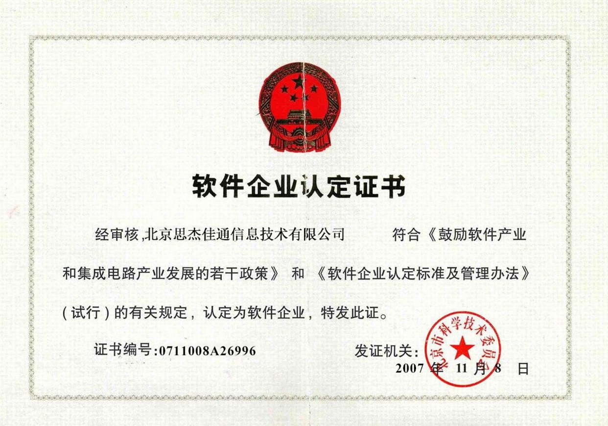 九、軟件企業認定證書