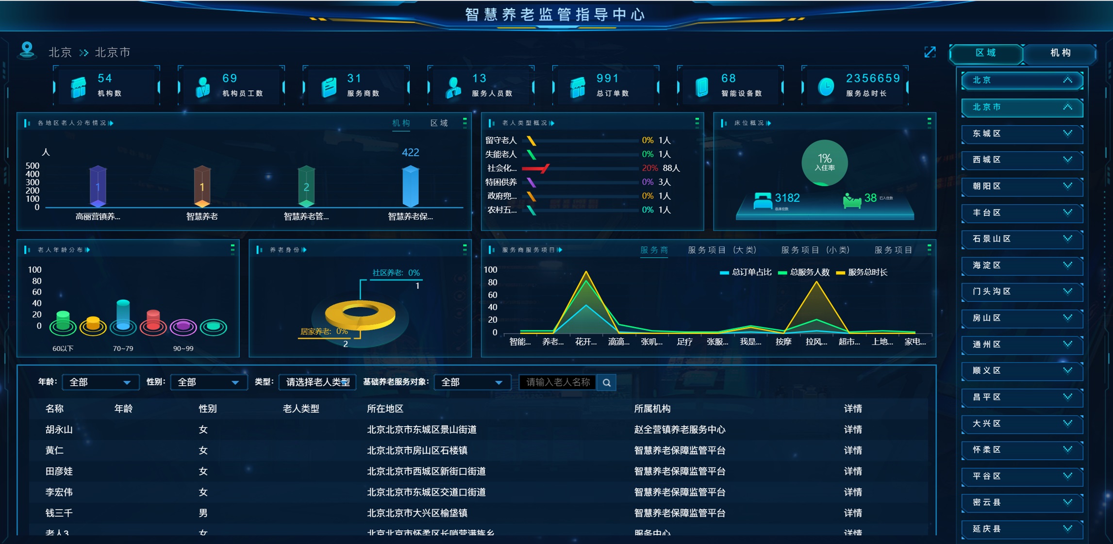 智慧監(jiān)管:定制化政府需求,科學(xué)管理信息,全面把控質(zhì)量,可視化數(shù)據(jù)呈現(xiàn);轄區(qū)內(nèi)老人數(shù)據(jù)實(shí)時(shí)更新,補(bǔ)貼信息嚴(yán)格監(jiān)管,政府實(shí)時(shí)了解老人、社區(qū)、服務(wù)機(jī)構(gòu)、服務(wù)人員、老人健康情況、老人求助情況等統(tǒng)計(jì)分析,為政府做出相關(guān)決策提供數(shù)據(jù)依據(jù)。