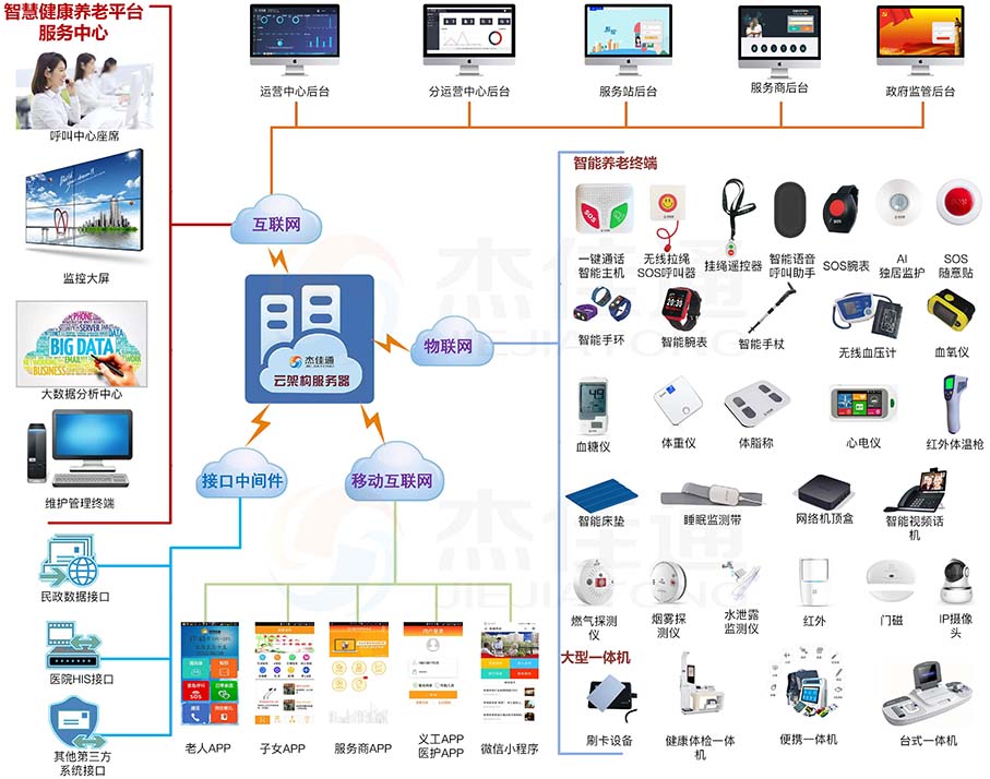 杰佳通智慧養老平臺一卡通系統(簡稱JJT-OCS-System, JJT-One Card Solution-System)適用于: